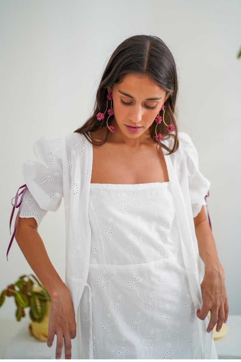Los camisones y batasde Serên Collection no se limitan a momentos especiales, sino que están diseñados para convertirse en una parte integral de la rutina diaria. Por eso son perfectos si buscas también camisones y batas para después de la boda. Estas prendas son perfectas para esos días en los que deseas relajarte en casa sin perder el estilo. Confeccionadas en tejidos de alta calidad, ofrecen la suavidad y ligereza necesarias para empezar la mañana o finalizar la jornada con elegancia. Además, su diseño atemporal y refinado permite que se adapten a diferentes momentos del día, convirtiéndolas en piezas versátiles. Nuestro Camisón Simone es una prenda de hilo color blanco con encaje de bolillo en el bajo y en el escote. Ya sea para disfrutar de un desayuno tranquilo, leer un libro en la tarde o prepararte para dormir, estos camisones y batas garantizan que siempre te sientas cómoda sin sacrificar el estilo. La durabilidad de los materiales en Serên Collection, sumada a su diseño estético, hace que estas prendas sean una inversión a largo plazo en confort y sofisticación.