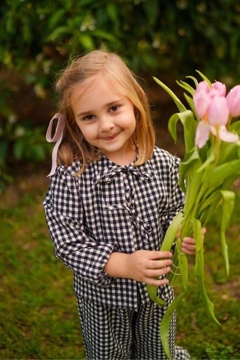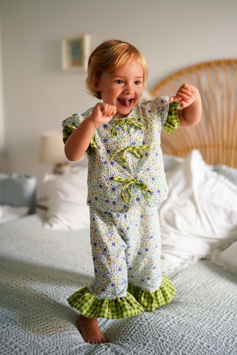 El pijama algodon bebe de Serên Collection destaca por su hermoso estampado de flores, ideal para quienes buscan un diseño encantador y lleno de dulzura. Las flores aportan un aire fresco y primaveral, convirtiéndolo en una opción perfecta para cualquier época del año. Como es nuestroPijama Flores Azul Matilda con el detalle de los volante en vichy verde, en contraste con el otro estampado. Este estampado no solo embellece la prenda, sino que también resalta la calidad y la atención al detalle en cada confección. Gracias a su tejido de algodón orgánico, el pijama algodon bebe se mantiene suave y resistente a los lavados, conservando su diseño intacto por más tiempo.