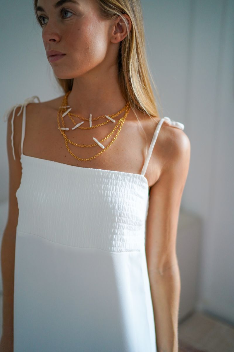 Los camisones de lactanciade Serên Collection están diseñados para proporcionar la máxima comodidad sin sacrificar el estilo. El detalle de los lazos en los tirantes permite ajustar la prenda de forma personalizada, lo que garantiza un ajuste cómodo durante todo el día. Como es el Camisón Filipa una pieza confeccionada en crepe en color blanco. La parte de arriba es una gasa de nido de abeja, que hace que combine a la perfección con la bata de su mismo nombre. Además, estos lazos hacen que sea fácil quitarse la bata cuando llega el momento de amamantar. Las mamás pueden sentirse seguras de que, al elegir Serên Collection, encontrarán un balance perfecto entre funcionalidad y moda. Esta prenda es ideal tanto para el día a día como para ocasiones especiales, donde no se quiere perder el toque de elegancia mientras se disfruta de la maternidad.