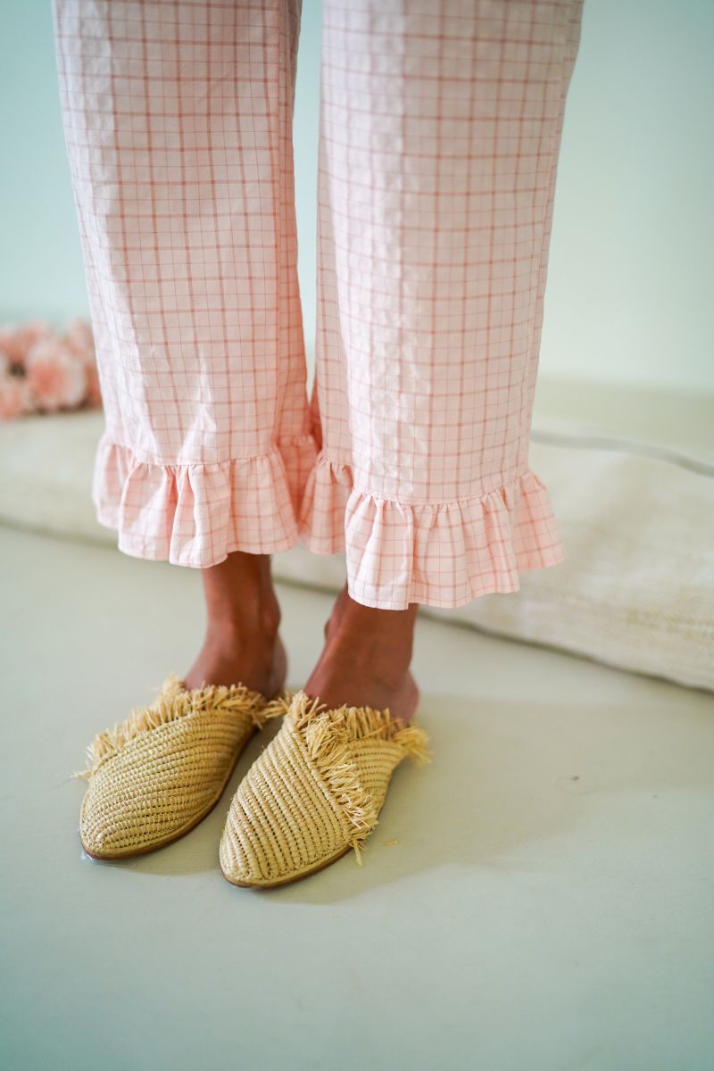 Cada par de zapatillas de Serên Collection es el resultado de un proceso meticuloso de fabricación manual. Nuestros artesanos dedican horas a perfeccionar cada detalle, desde la textura del tejido hasta la precisión del diseño. Este nivel de dedicación garantiza no sólo un producto final de alta calidad, sino también la autenticidad que sólo puede ofrecer algo hecho a mano. Las Zapatillas Cleopatra son una pieza ideal  para complementar tus looks de verano. El diseño de las zapatillas casa mujer combina la tradición artesanal con un estilo contemporáneo, haciéndolas ideales tanto para momentos de relajación como para ocasiones en las que deseas recibir visitas con elegancia. Al usar estas zapatillas, no sólo experimentas comodidad, sino también una conexión emocional con el arte y la cultura que representan.